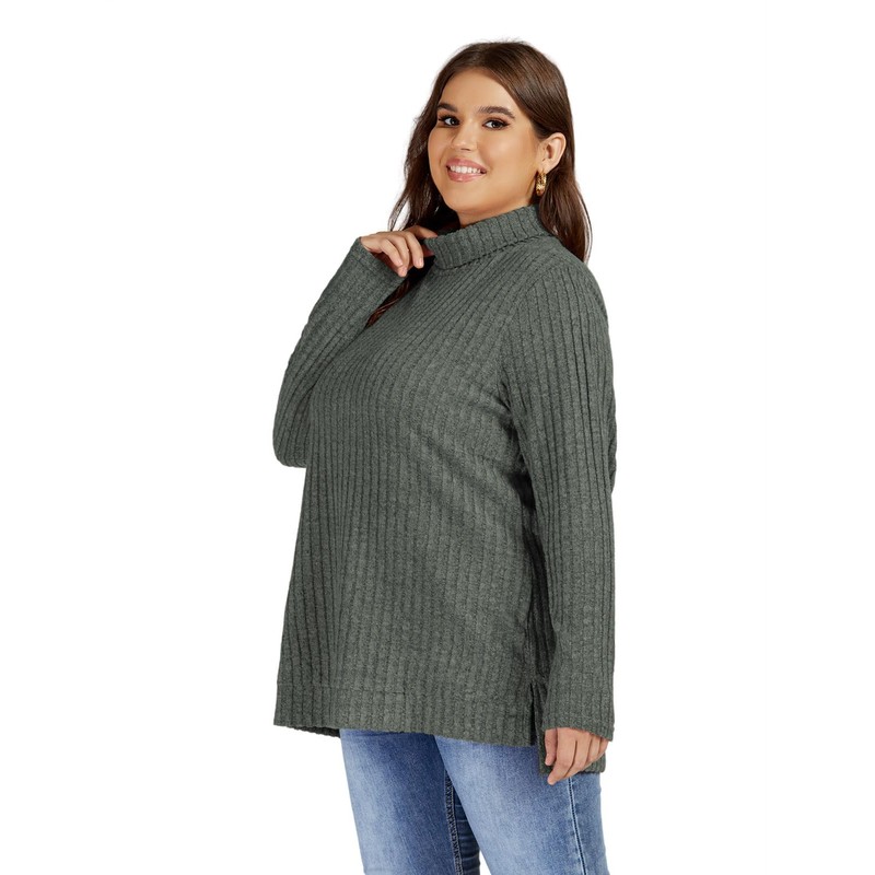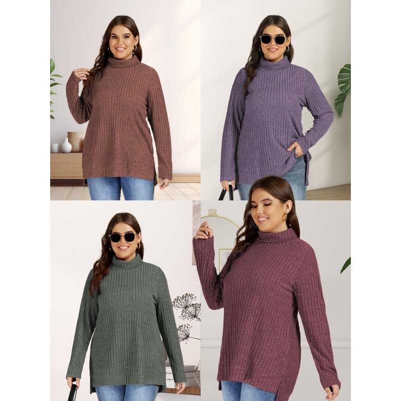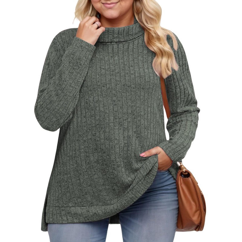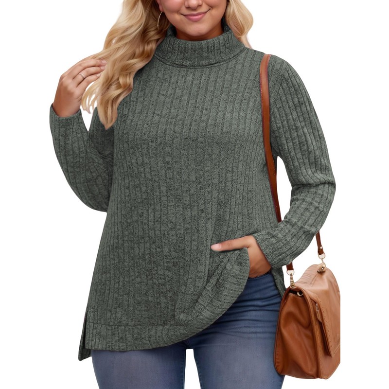 - Women's plus size long sleeve tops feature chic turtle neck for trendy look and nice warm, cute side split high low hem for dressy look and flattering fit, casual, stylish and full of femininity