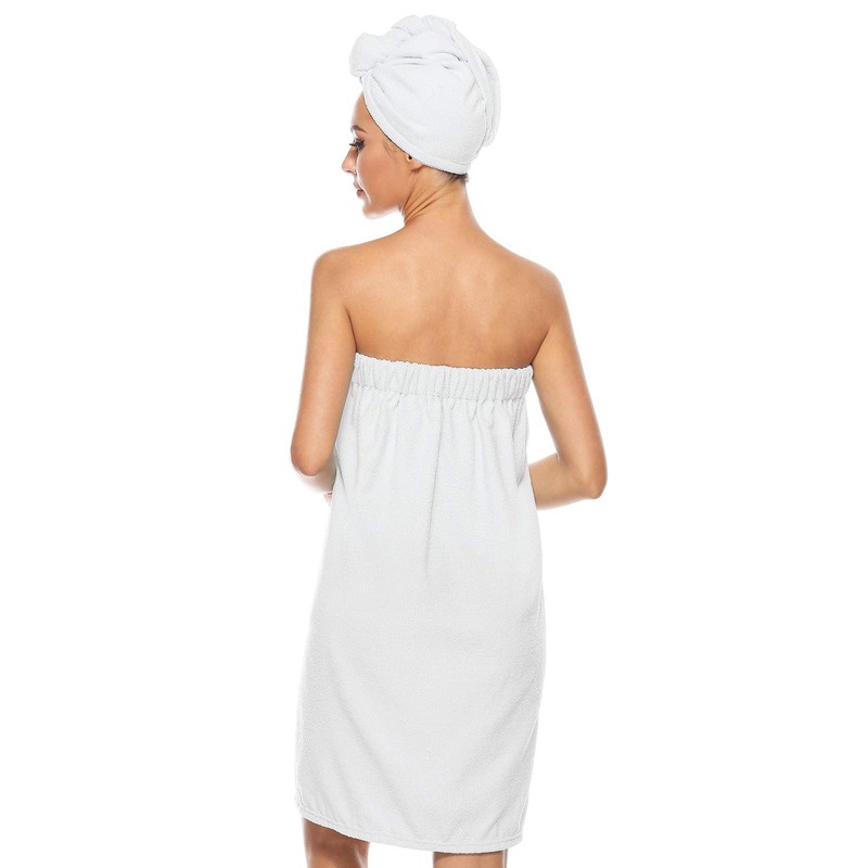 Vislivin Women Bath Wrap Towel for Shower Wrap & Head Towel Body Wrap Bathrobe Adjustable Closure White XL