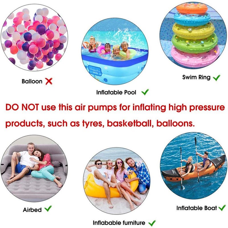 - This air pump is widely used and can be used for inflatable boats, inflatable boats, swimming beds, swimming rings and other inflatable toys, etc.