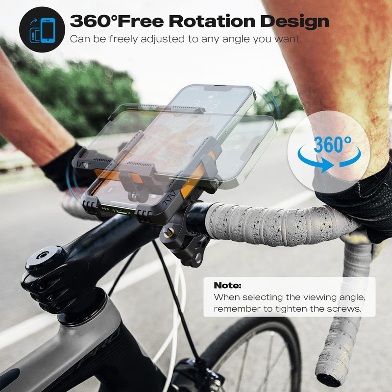 - 【Full Access】:The clever open design of the bicycle phone mount allows full access to the phone screen controls and all buttons without blocking your face ID and fingerprint ID. 360°free rotation, you can use the mobile phone GPS function at any time.Transform into an sports camera, record and share your cycle Tour!