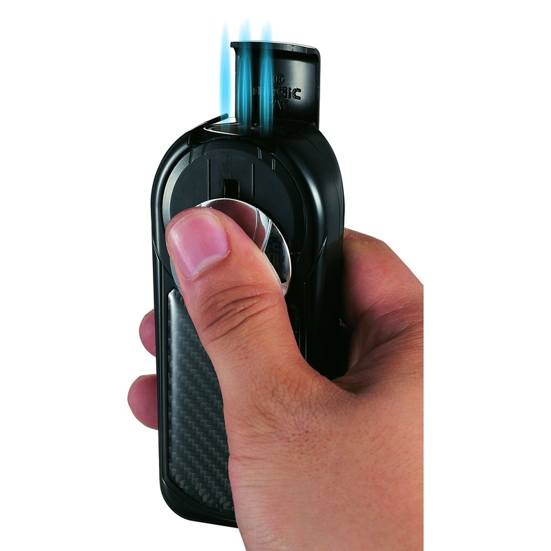Visol Dobrev V-Flame Black Carbon Fiber 5 Torch Flame Table Lighter