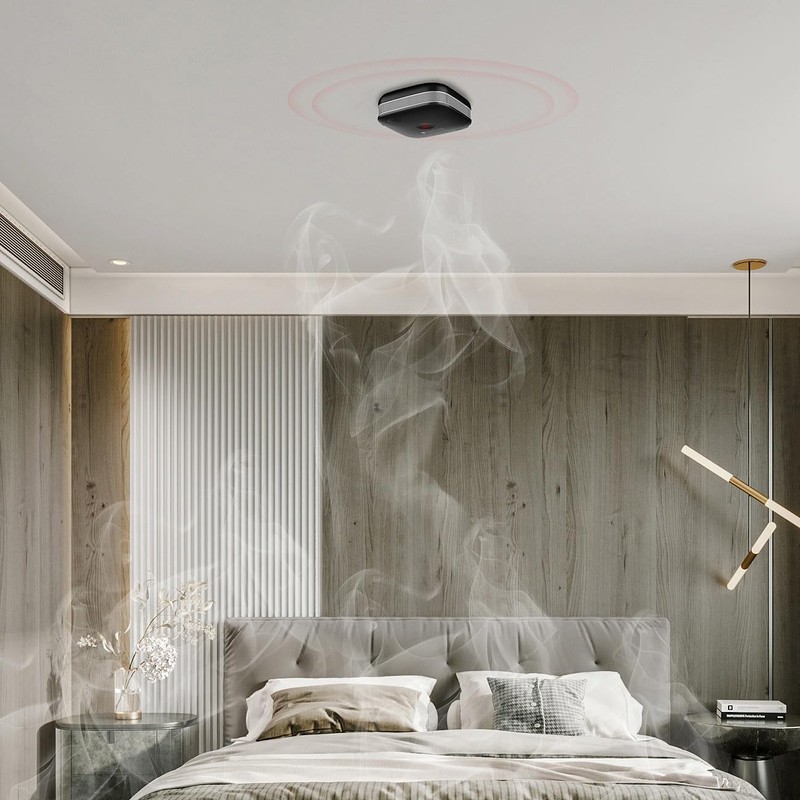 - Überwacht Räume mit bis zu 60 m² • WiFi-kompatibel: unterstützt WLAN-Standards IEEE 802.11b/g/n (2,4 GHz) • Optischer Alarm: LED leuchtet bei Alarm auf • Rauch-Intensität: 0,100 bis 0,160 d/m • Farbe: Schwarz