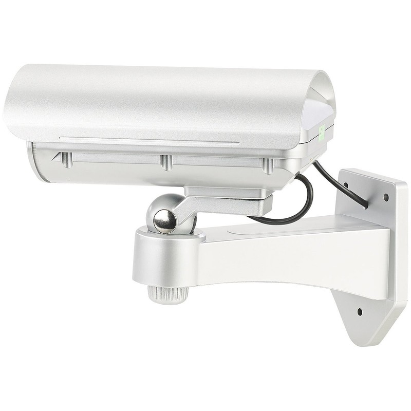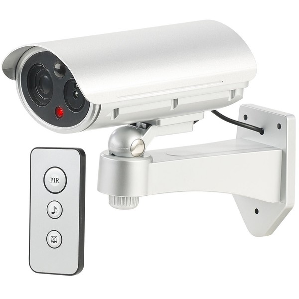 - Dummy camera with removable lid including remote control, mounting material and German instructions. Deceptively real dummy camera – also relevant or suitable for: surveillance cameras, surveillance, alarm system, atrappe, outdoor, cameras, outdoor, fake