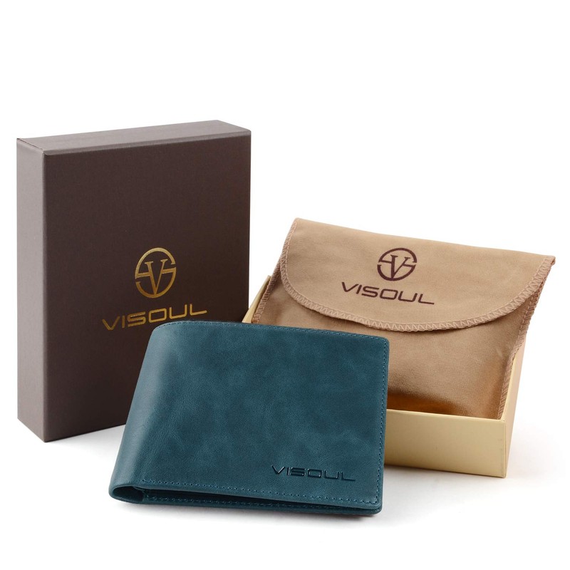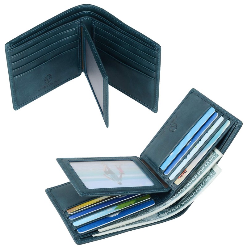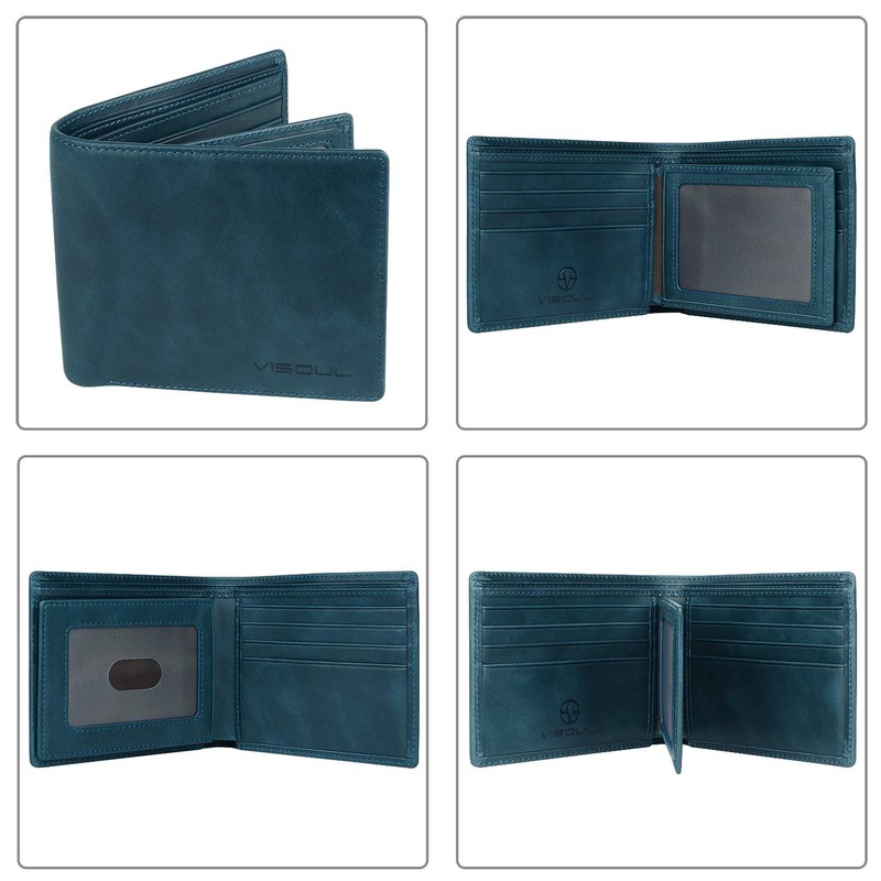 VISOUL Men's Leather Wallet with ID Window, RFID Protection, Genuine Leather Wallet for Men, blue, rfid wallet
