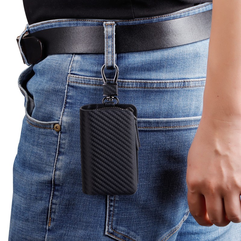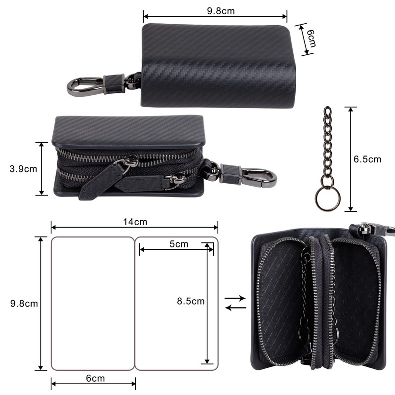 - 360° Rotating Carabiner: The carabiner is a 360° rotating type, which is very convenient for palm-sized use.You can hang it on your pants or bag, so it’s great for carrying around anytime.Ring with Chain: Comes with a chain in the case to keep your smart key connected and prevent it from falling out in the event of forgetting to close the zipper.