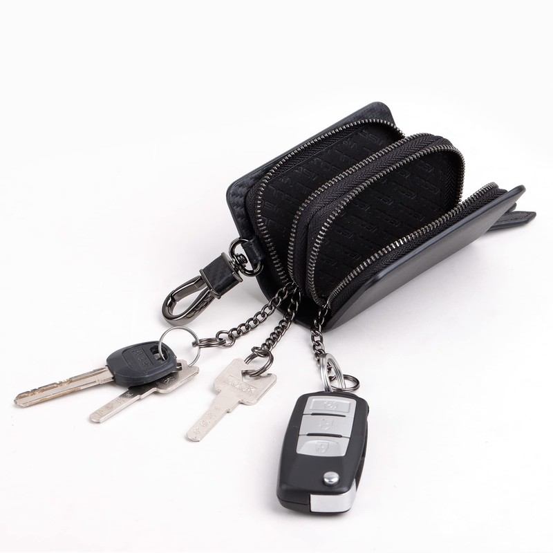 - Holds 2 Keys Simultaneously: This authentic leather smart key case can hold 2 keys and has an L-shaped zipper design for easy access.Aside from smart keys, it can also store car keys and house keys to name a few.