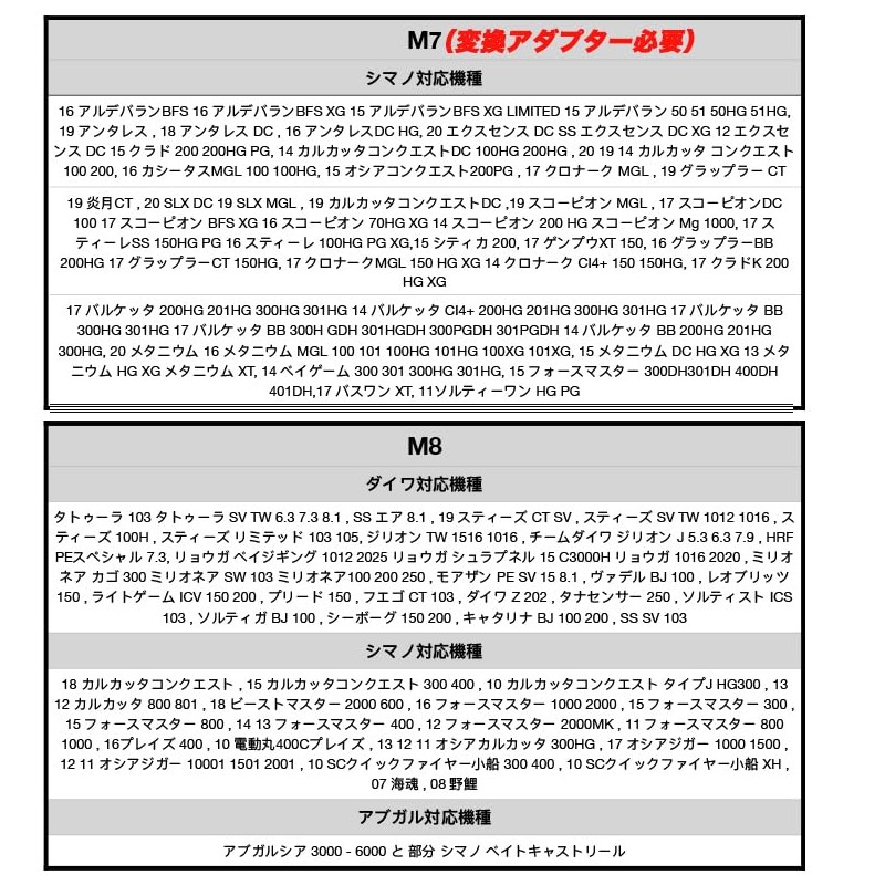 - Compatible with Shimano Daiwa Shimano requires a separate screw adapter
