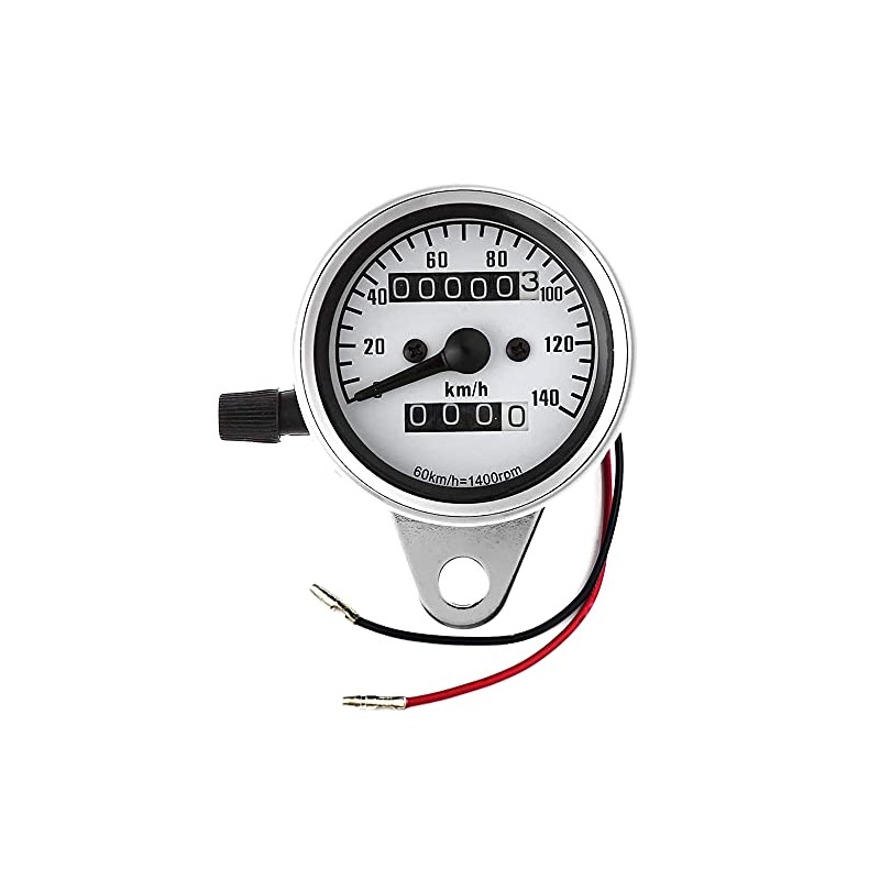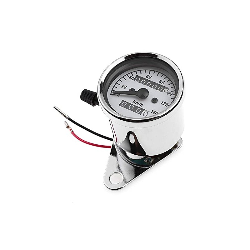 VISPREA Speedometer, Mechanical, 12 V, 140 km/h for Motorcycles, General Purpose Meter, Maximum Speed Display, 140/h, Lighting, Backlight, Bike Metal, Motorcycle, Odometer, Odometer, with V-Shaped