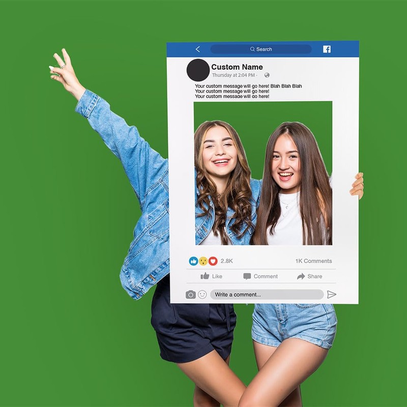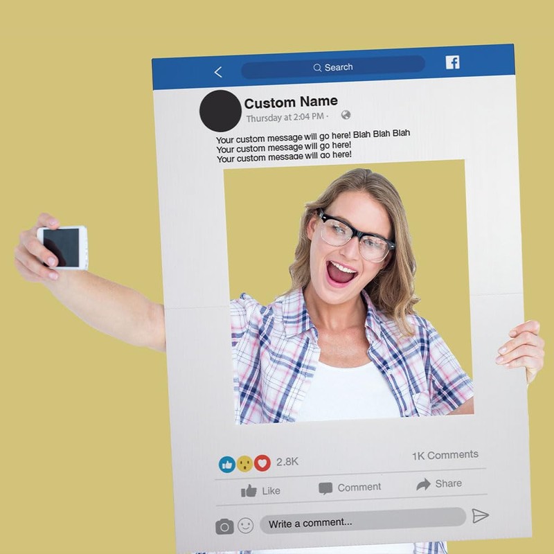- CUSTOM FACEBOOK FRAME: Celebrate birthdays and graduations with a custom 21in x 29in Facebook selfie frame! Customize your Facebook photo frame to make it stand out among other signs at any event. Simply click "customize" to create your cut out picture frame and we'll make it exactly to your specifications!