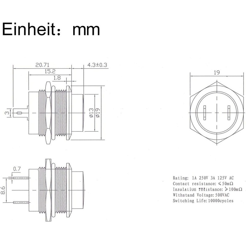 • ★AC 250V 3A / AC125V 6A; Mounting Thread Diameter: 16mm, Total Size: 24.4 x 20mm (L x D).
