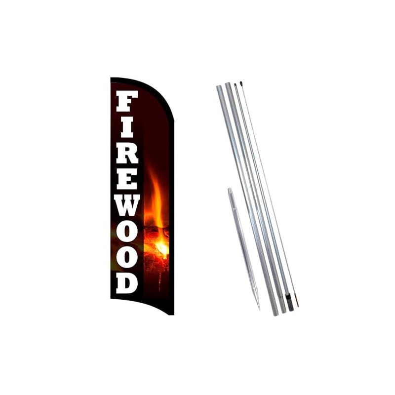 Firewood Premium Windless Feather Flag Bundle (11.5' Tall Flag, 15' Tall Flagpole, Ground Mount Stake) L MM