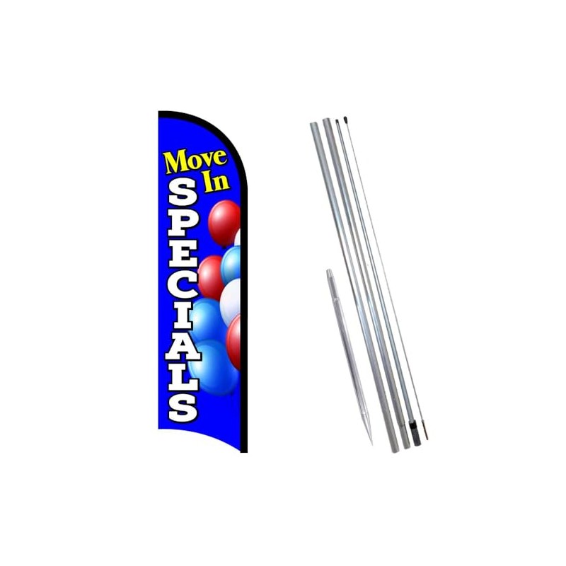 Vista Flags Move In Specials (Blue) Premium Windless Feather Banner Flag Kit (Flag, Pole, & Ground Mt)