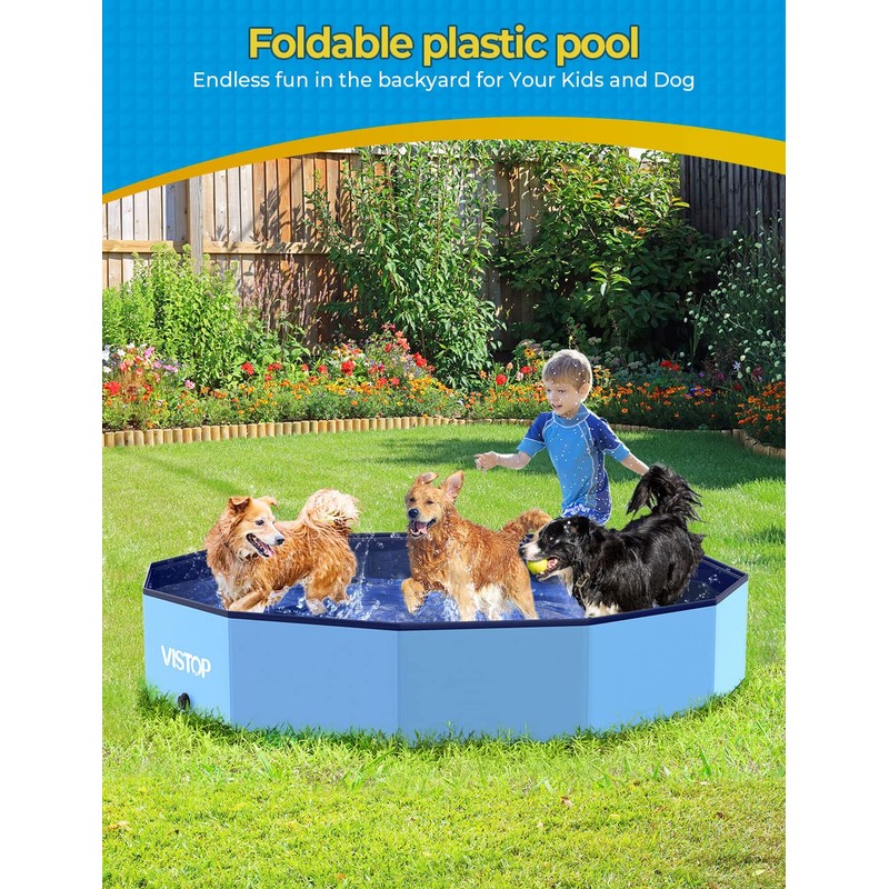 VISTOP Extra Large Foldable Dog Pool XXL, Hard Plastic Shell Portable Swimming Pool for Dogs Cats and Kids Pet Puppy Bathing Tub Collapsible Kiddie Pool (67inch.D x 11.8inch.H, Blue)