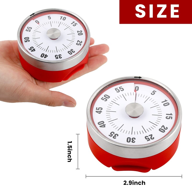 - Product Size: The diameter of the timer is 3 inches, the thickness is 1.5 inches, small and portable, easy to carry.