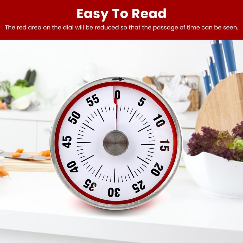 - Greater Time Awareness: During the use of the timer, the red area on the dial will be reduced so that the passage of time can be seen. When the time is up, there is an alarm of 72 decibels for 3-5 seconds, which makes the passage of time audible.