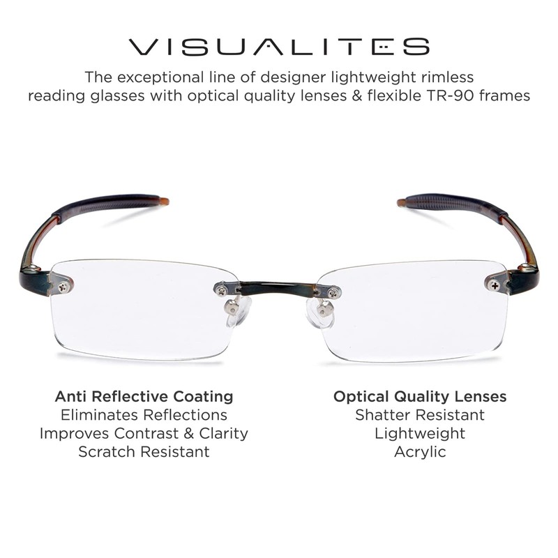 Visualites 1 Forest 1.50 Power Lightweight Rimless Reading Glasses For Men and Women