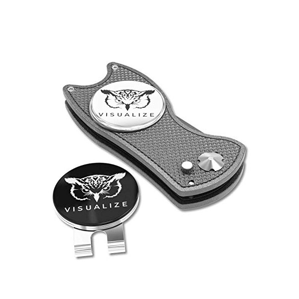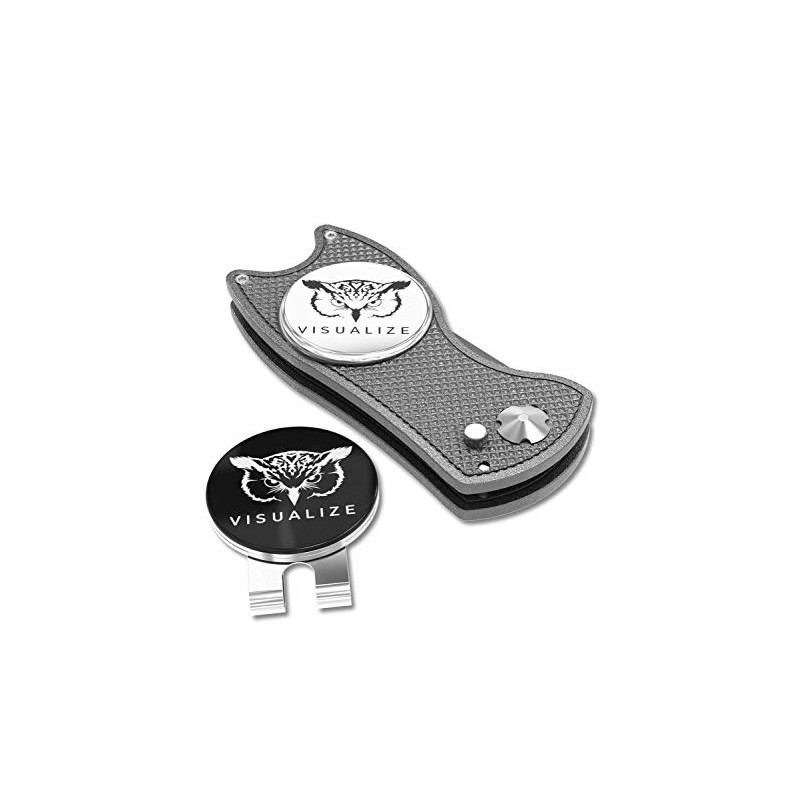 VISUALIZE Talon Plus Premium Switchblade-Style Divot Repair Tools - Golf Accessories - Golf Divot Tool with Silicone Owl Golf Ball Marker with Hat Clip - 4-in-1 Multi Tool Kit (Gun Metal Gray)