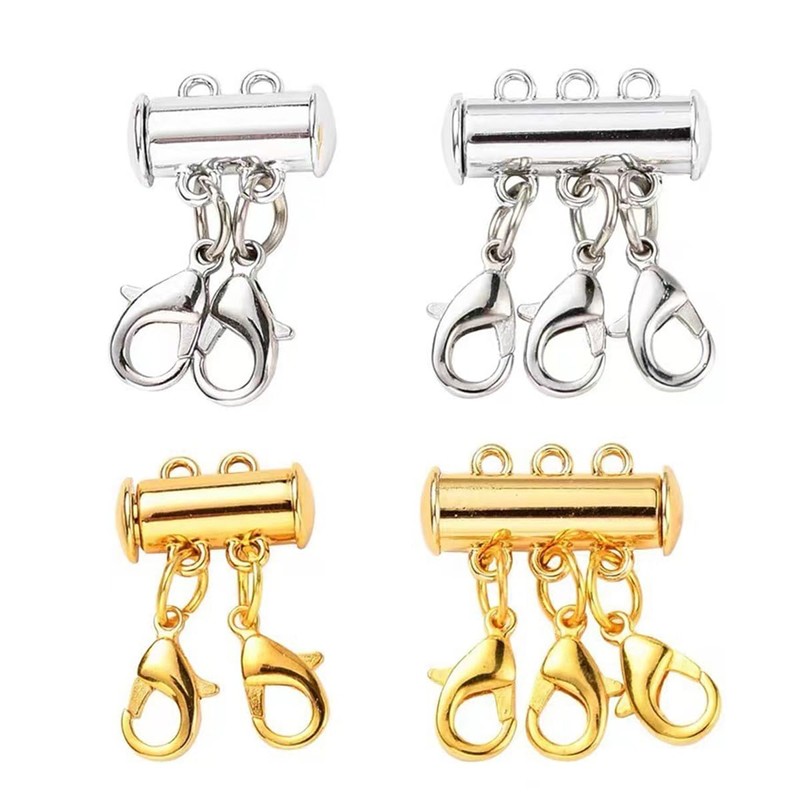 - Packing list: there are 2 pieces double necklace clasps and 2 pieces 3 necklace clasps, which can match your necklace due to different colors. They are packed in a transparent box for easy storage and transport and can be used as a shortener in your jewellery bead project or amplifier