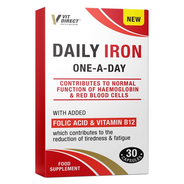 - DAILY IRON - The Vit Direct Daily Iron Supplements contribute to the normal function of haemoglobin and red blood cells. Just one tablet a day provides all the benefits you need, making it easy to incorporate into your daily routine. (30 Capsules)