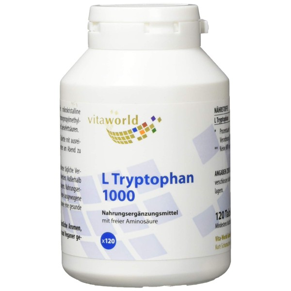 Vita World L-Tryptophan 1000 mg 120 Tablets High Dose Vegan L Tryptophan Amino Acid Only 1 Tablet Per Day