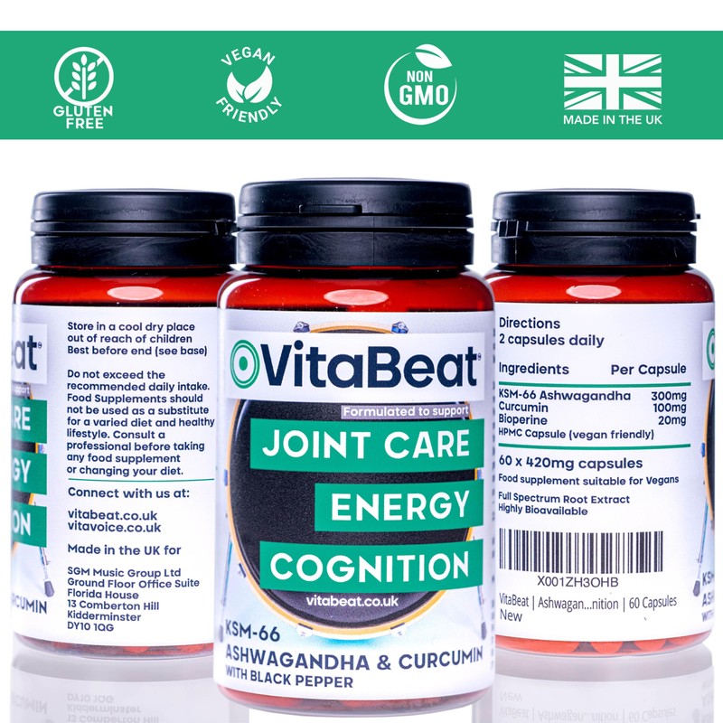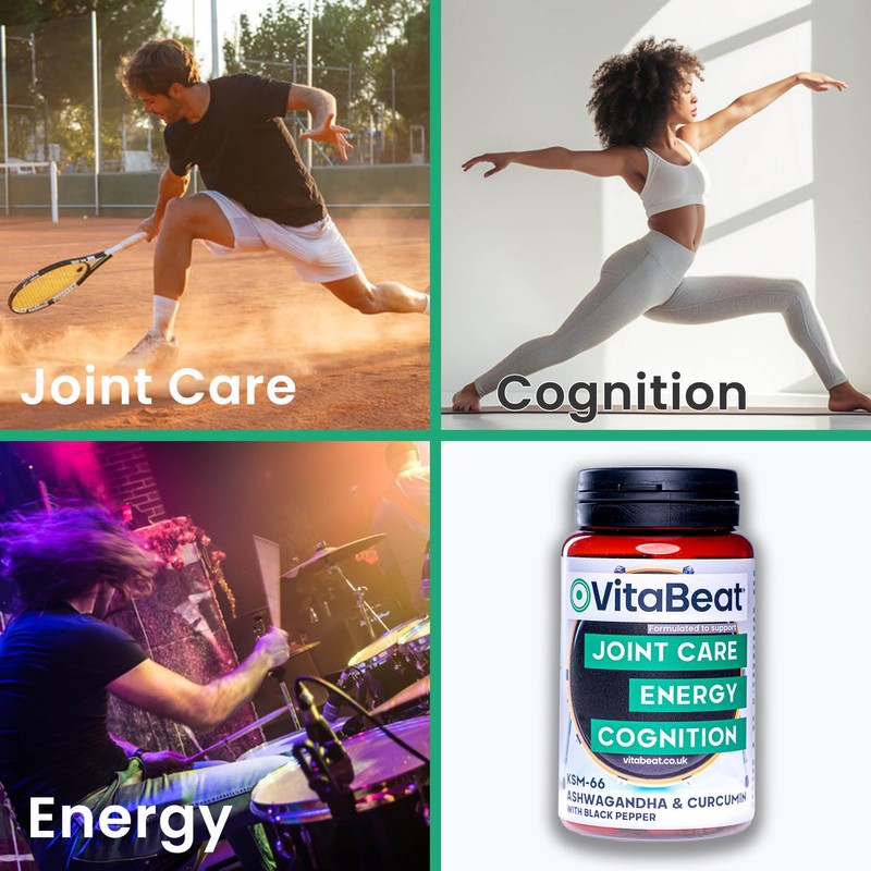 VitaBeat | Ashwagandha & Curcumin with Black Pepper | Formulated for Energy, Joint Care & Cognition | 60 Capsules