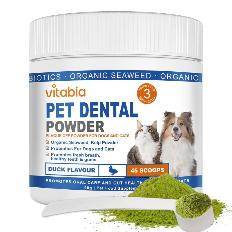 VITABIA Plaque Off Powder For Dogs & Cats - Probiotics for Dogs, Cat Treats, Dog Plaque Remover, Cat Dental Treats, Dog Teeth Cleaning, Cat Teeth Cleaning - Ideal for Dog and Cat Oral Health 90g