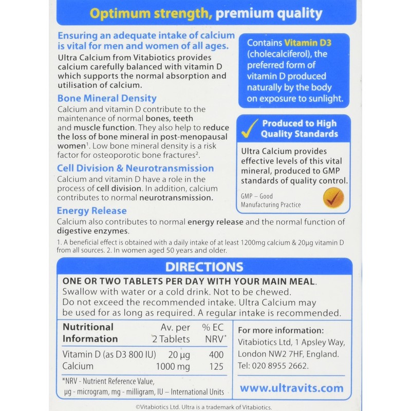 Vitabiotics Ultra Calcium with Vitamin D Tablets, Pack of 30
