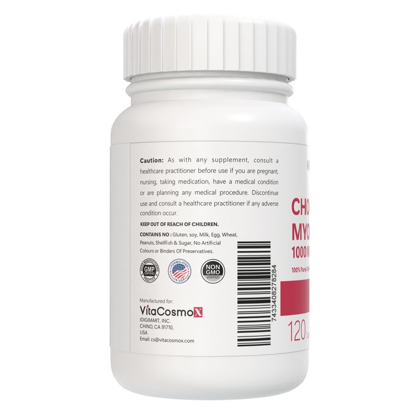 VitaCosmoX Choline & Inositol Complex, 1000mg, 120 Vegan Capsules, 60 Servings, Gluten Free, Non-GMO, and Vegetarian Friendly