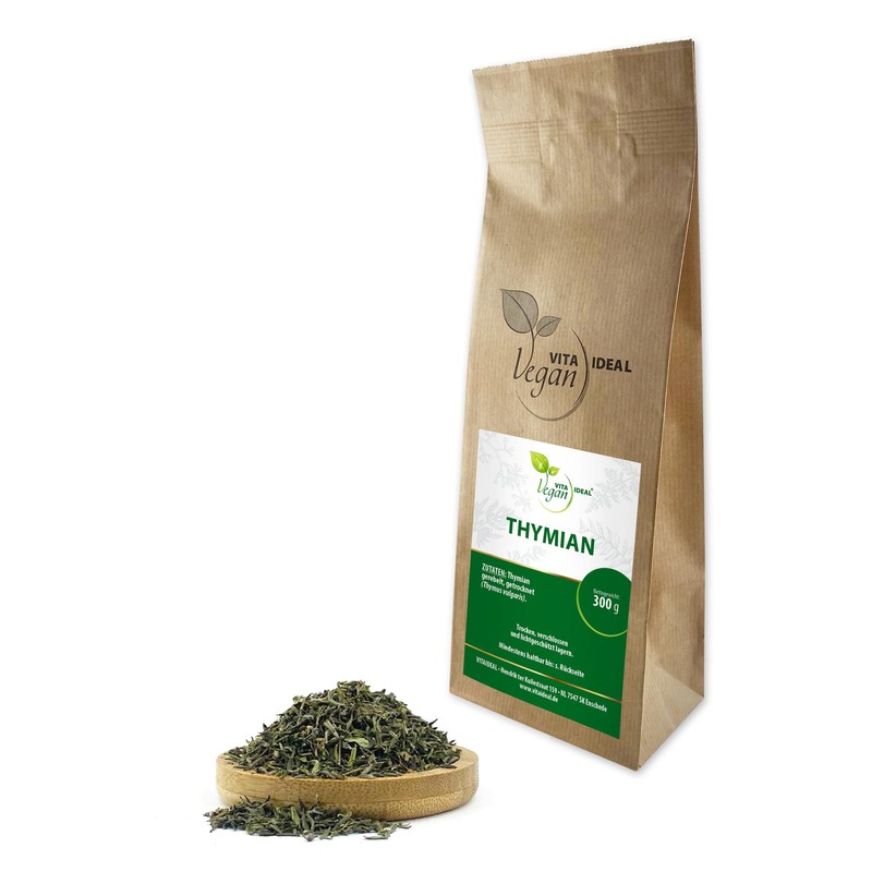 - Contents: Thyme (Thymus vulgaris) 100% natural and plant-based. No additives. Bottled in the Netherlands.