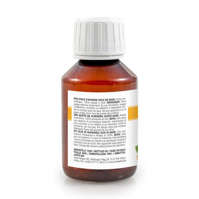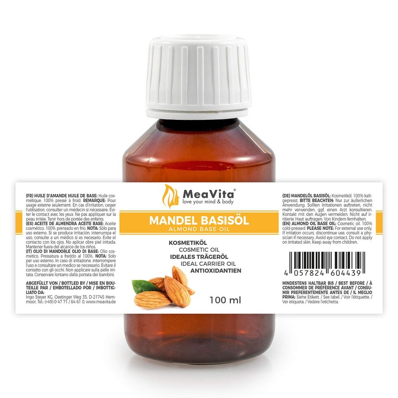 VitaFeel Almond Base Oil, Sweet, Pack of 1 (1 x 100 ml), Vegan, GM-Free, Ideal for Skin and Hair Care, for Aromatherapy and as a Base Oil for Massage Oils or Natural Cosmetics