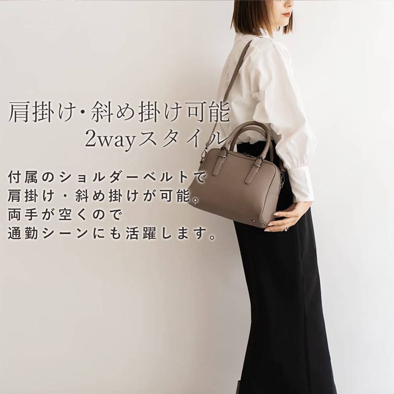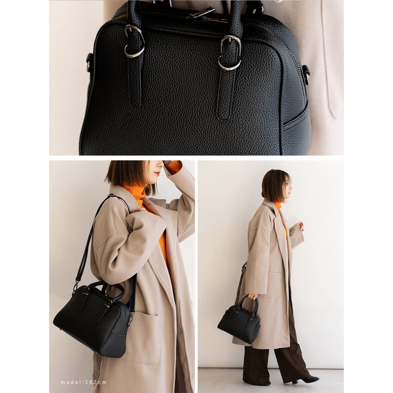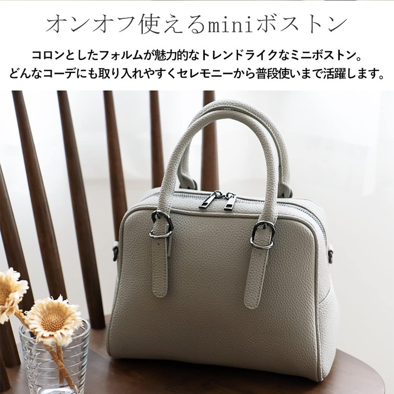 - A cute mini Boston bag with a rounded shape. Made of thick faux leather with a fine grain texture. The rounded trapezoid silhouette creates a feminine impression. The included shoulder strap allows you to wear it over the shoulder or across the body. The simple design makes it suitable for ceremonies and formal occasions such as entrance and graduation ceremonies