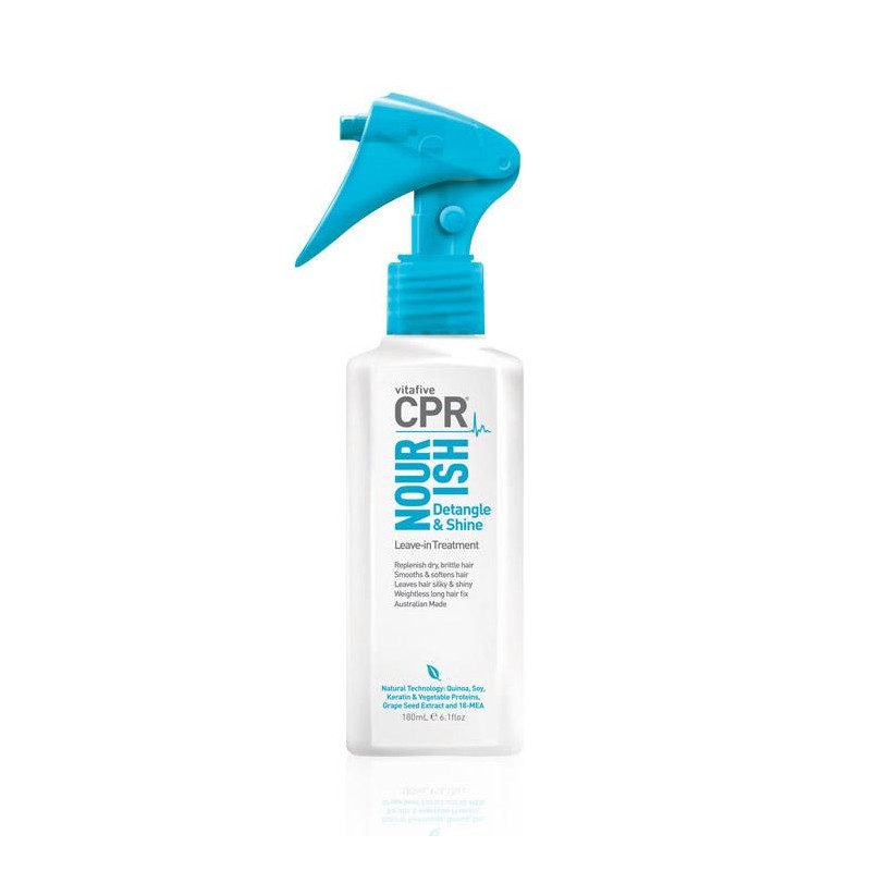 Vitafive CPR Nourish Detangle & Shine Leave-in Treatment 180ml is an ultra-light conditioning and detangling spray that creates instant silky softness and shine while reducing breakage and split ends.