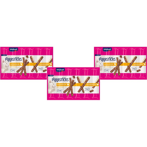 - 3 Pack Of Vitakraft Chicken Purrsticks Cat Treats, 6 Pouches Per Pack