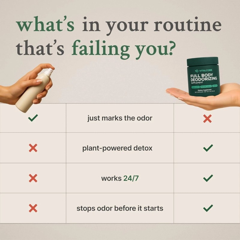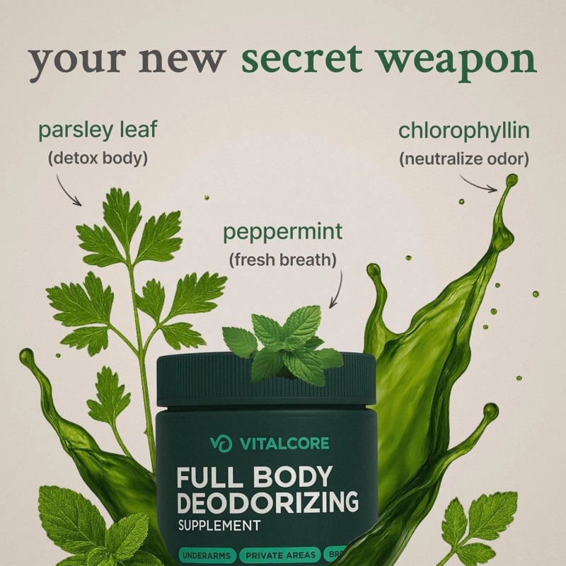 Vital Core Body Deodorizing Supplement - 200mg Chlorophyll Pills for 24hr Freshness | Gut &