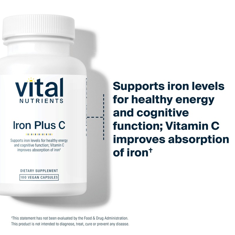- Added Vitamin C Improves Absorption: Vital Nutrients Iron Plus C includes 200mg vitamin C as ascorbic acid to improve the intestinal absorption of iron, an essential mineral used to make hemoglobin