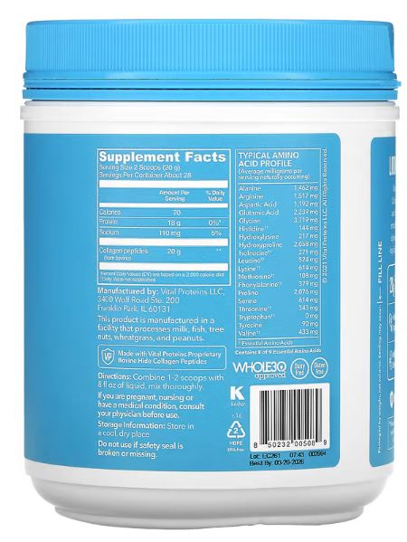 Vital Proteins Collagen Peptides Unflavored, 567g 1.25lbs / Vital Proteins 콜라겐 펩타이드 무맛, 567g 1.25lbs