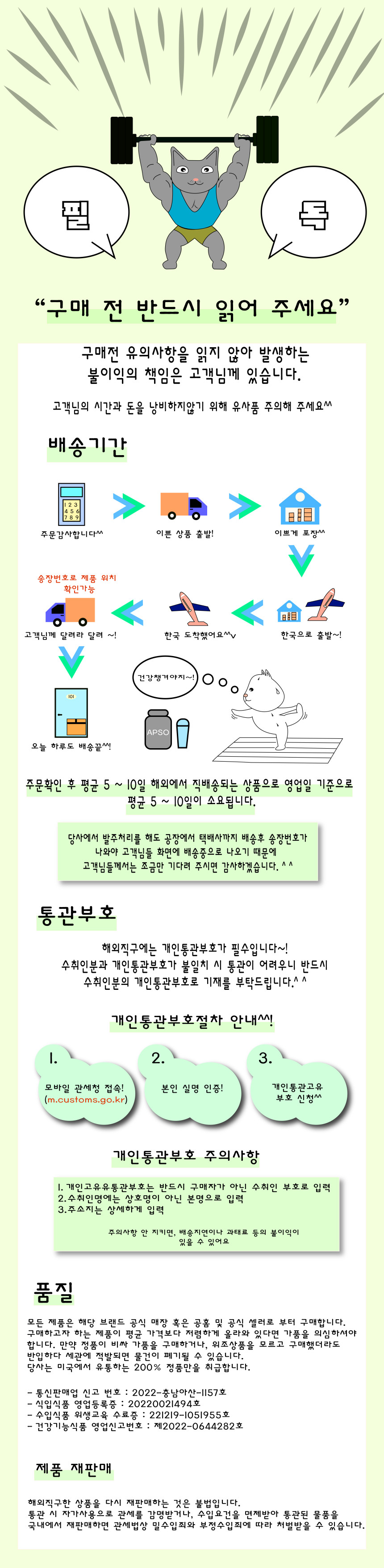 - 수입 건강기능식품의 경우 “수입식품안전관리특별법에 따른 수입신고를 필함”의 문구: 상세정보 별도표기