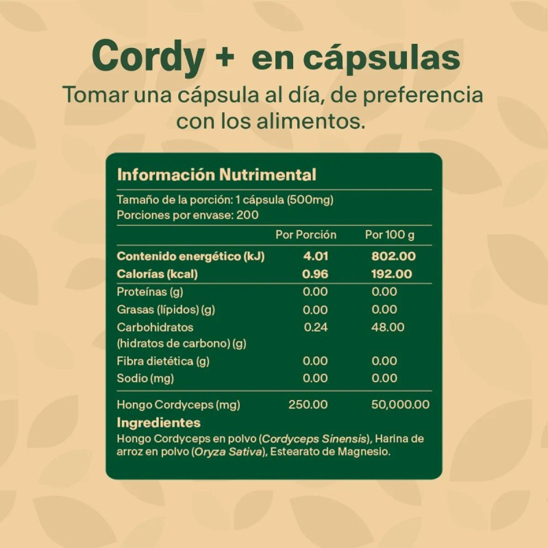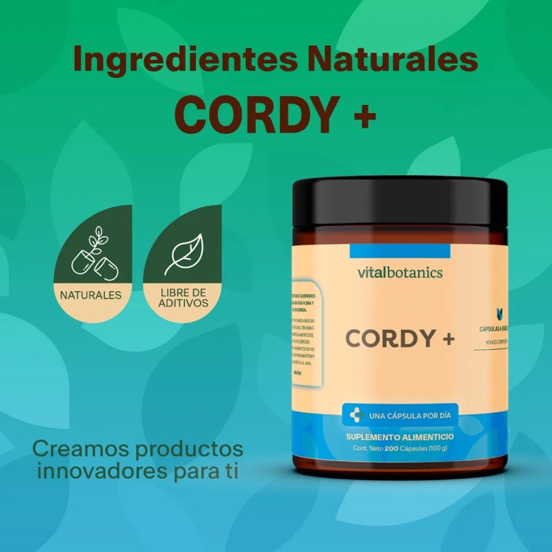 Con VitalBotanics Mega Cordyceps, recibes una fórmula concentrada de 500 mg por cápsula, diseñada para brindarte apoyo diario en tu vitalidad, rendimiento deportivo y salud general.