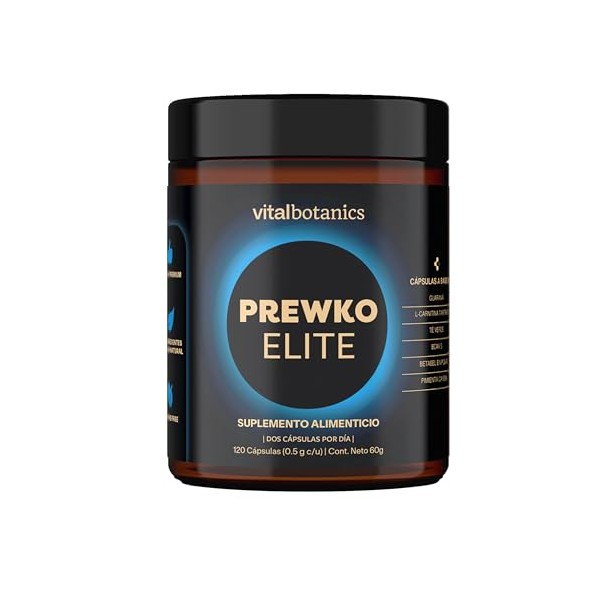 VITALBOTANICS - Preworkout Elite 120 Cpsulas - Pre Entreno - Suplemento Alimenticio con BCAAs, L-Carnitina y Extractos Naturales - Energa