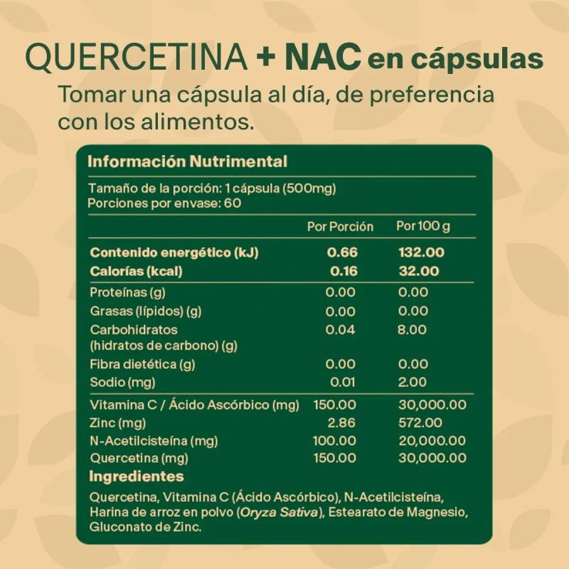 ✔️ Fórmula combinada: Quercetina + NAC + Zinc + Vitamina C.