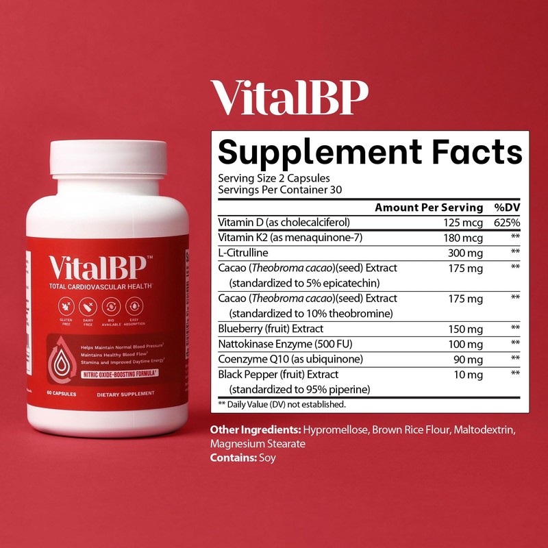 - Supports Healthy Blood Flow and Circulation: VitalBP is designed with key ingredients like L-Citrulline and Nattokinase to support blood flow and to help maintain healthy circulation for overall health