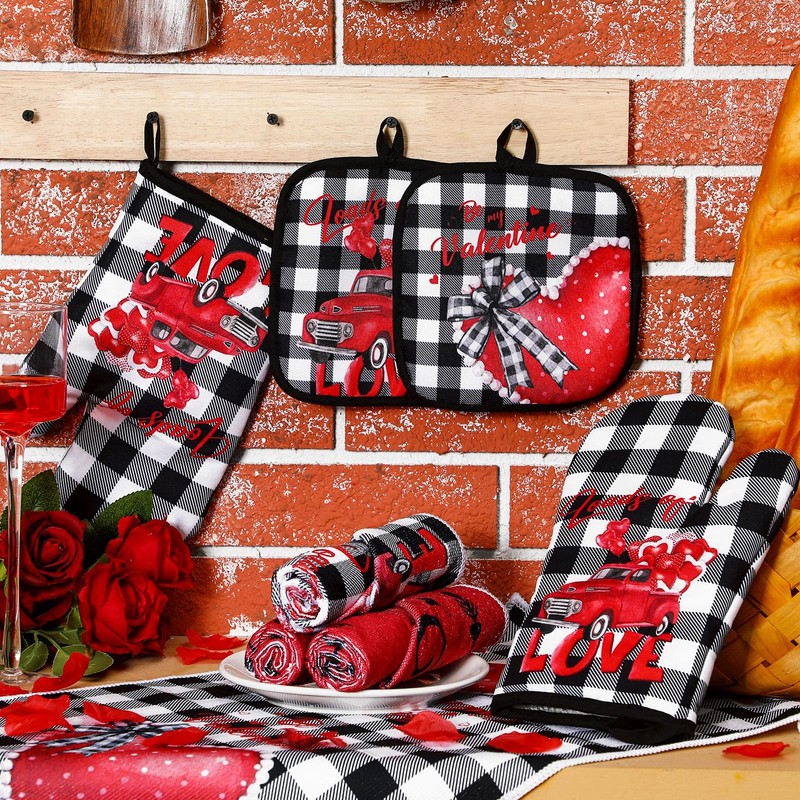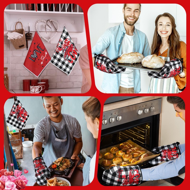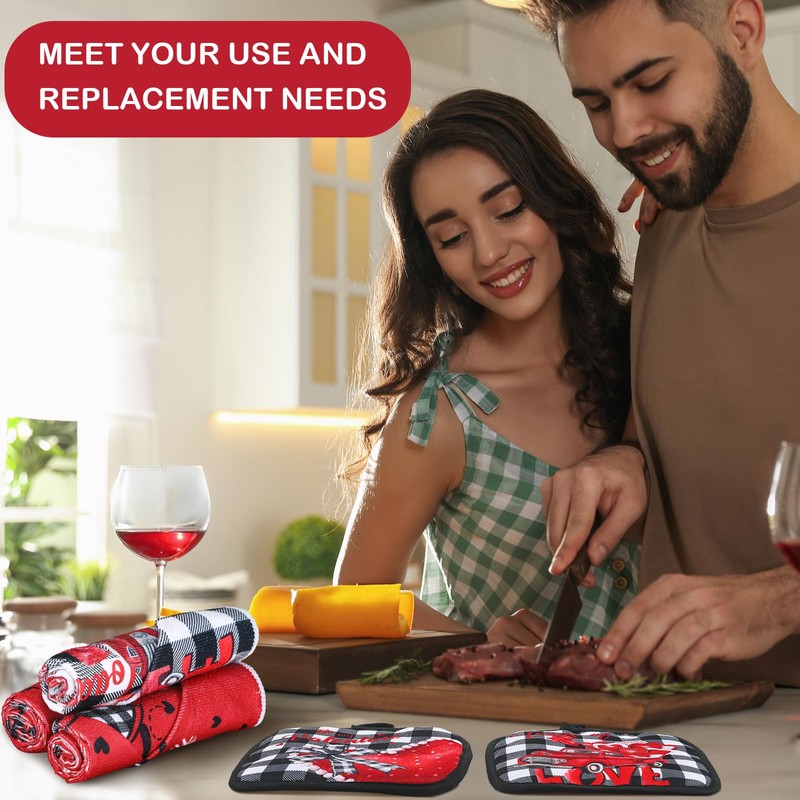 - Accesorios de cocina con corazón: este paquete incluye 4 encantadores paños de cocina con el tema del Día de San Valentín, 2 resistentes guantes para horno y 2 agarraderas para ollas versátiles, que exhiben un elegante diseño de cuadros rojos y de búfalo; Estos accesorios no solo satisfacen sus necesidades prácticas diarias sino que también agregue un toque cariñoso a su espacio de cocina, la amplia cantidad garantiza que tenga suficientes suministros para cambiar o reemplazar en la vida diaria