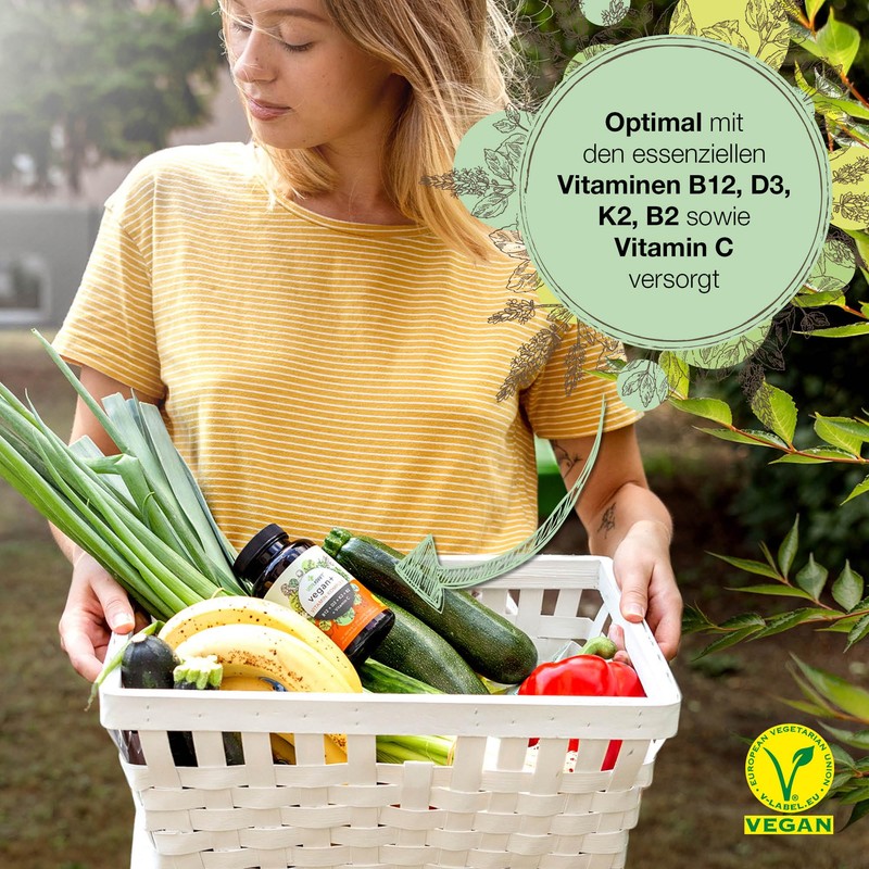 VITALKRAFT Vegan+ Vitamin Complex High Dose Capsules with Vitamins B12 + D3 + K2 + B2 + Vitamin C/Lactose-free and Gluten-Free Dietary Supplement Especially for Vegans and Vegetarians