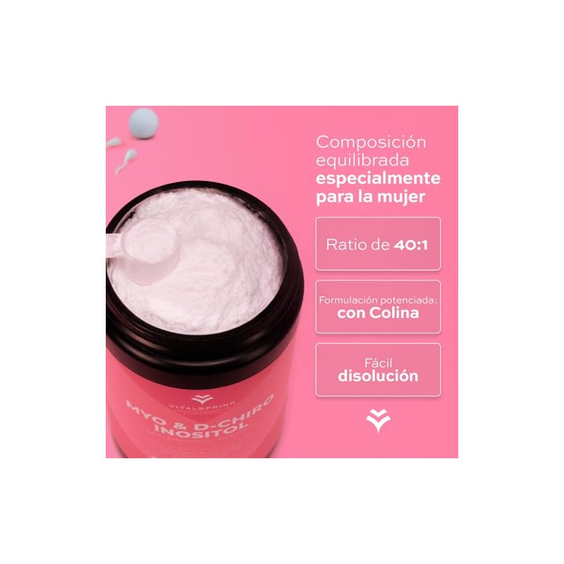 Vitalspring | Myo & D-Chiro Inositol 40:1 |120 días de duración con Colina, Zinc, Methyl Folate y D3.