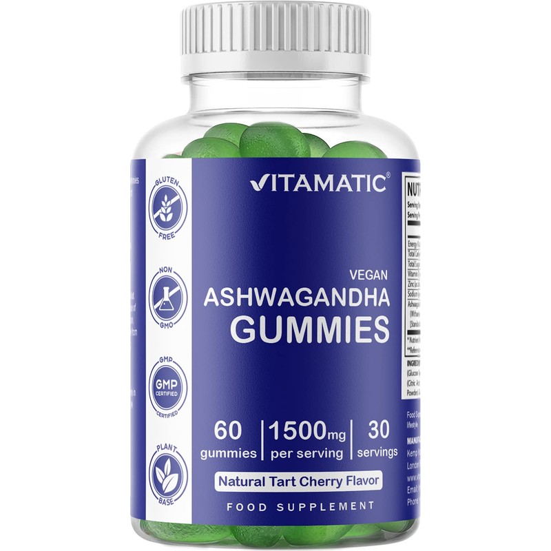 Vitamatic Ashwagandha Gummies 1500mg per Serving - 60 Vegan Gummies - 3% Withanolides