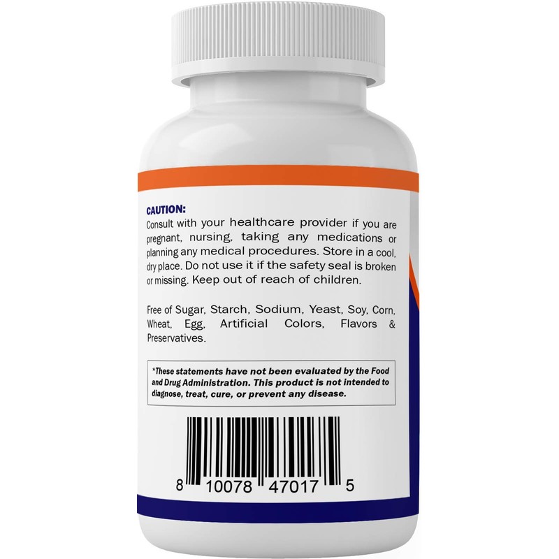 - Free of sugar, starch, soy, yeast, corn, wheat, egg, artificial color, flavor & preservatives.