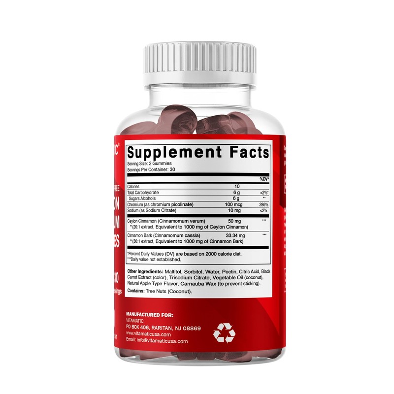 - Vitamatic innovative GUMMY feature the combination of Ceylon Cinnamon and Chromium, two nutrients known for their ability to support healthy living