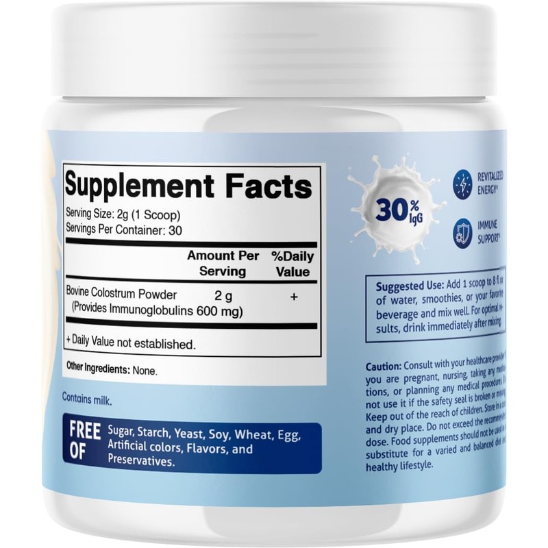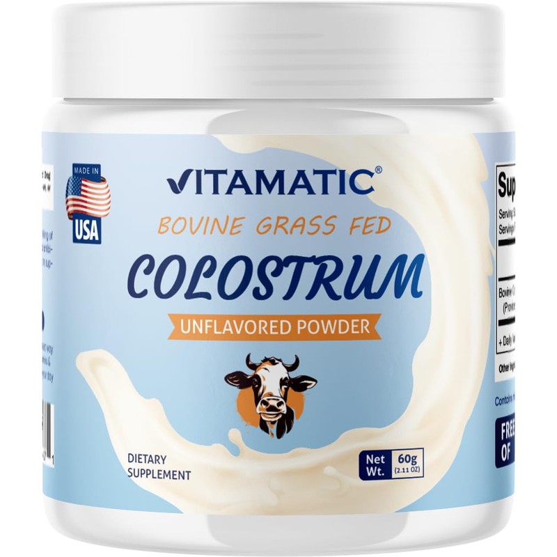 Vitamatic Vitamatic Bovine Colostrum Powder - Supplement for Gut Health, Hair Growth, Beauty, Muscle Recovery, & Immune Support - Easy to Mix - 30 Servings (Unflavored) (30 Servings, Unflavored)