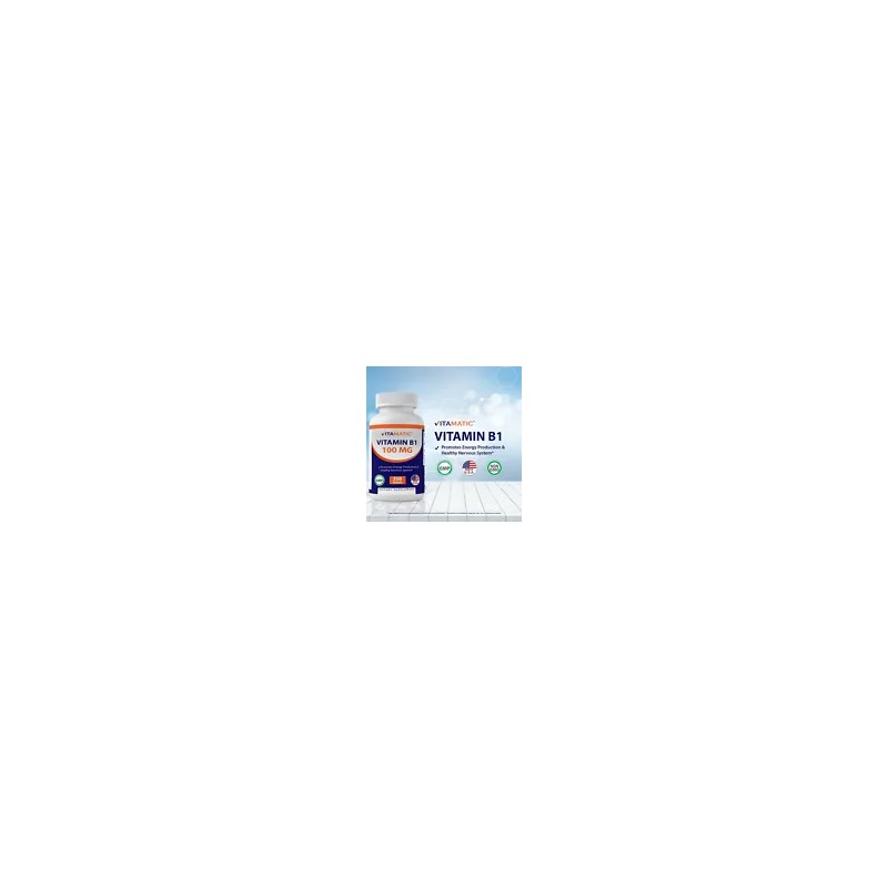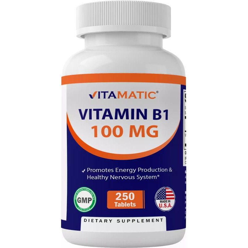 Vitamatic Vitamin B1 100mg – 250 Vegetarian Tablets | High Potency Thiamine Mononitrate Supplement | Supports Energy Production, Nervous System & Metabolism | Non-GMO, Gluten-Free, No Preservatives