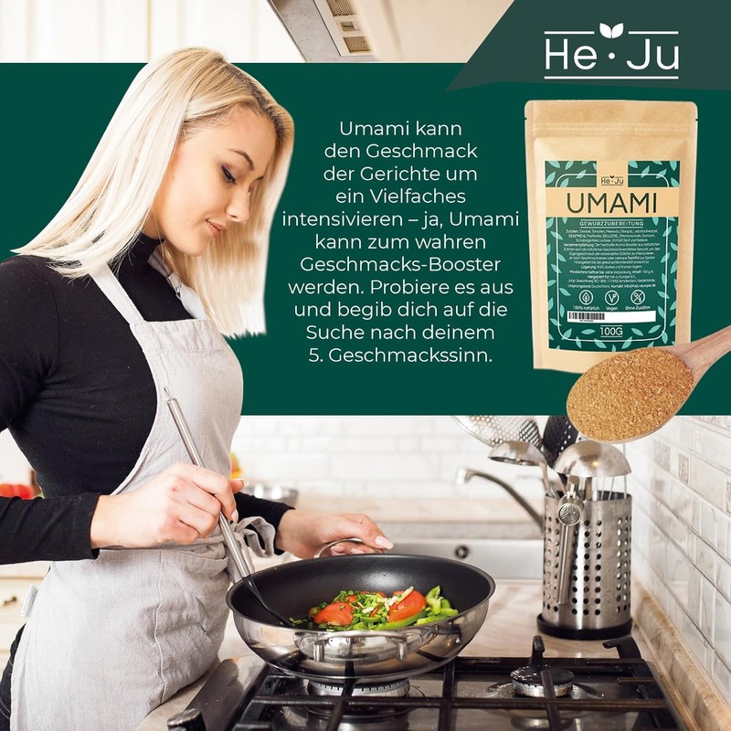About this item Intense, hearty spicy taste: our umami spice brings the fifth taste to your kitchen and gives your dishes a deeper, full-bodied spice that enhances the natural taste of food. Versatile and easy to use: ideal for soups, sauces, vegetables, pasta, rice dishes, salads or even as a table spice - for anyone who wants to refine their meals with an umami-rich accent. 100% natural ingredients: free from artificial flavour enhancers, dyes or additives - for an authentic and healthy taste that takes your dishes to a new level. Perfect combination of sea salt, mushrooms and spices: our special blend contains ingredients such as porcini mushrooms, tomatoes and spices that enhance the natural umami intensity of your meals. Fresh and aromatic packaging: the resealable packaging protects the spice from moisture and preserves the aromas, so you can enjoy the full taste at any time. Handmade with the heart of a German start-up: We are a young company specialising in the development of vegan spices, which are lovingly handmade and bottled in collaboration with social institutions - for sustainable enjoyment with social added value.